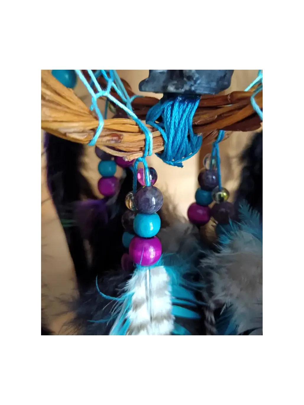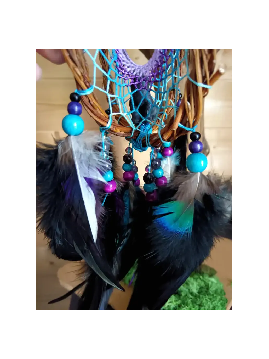 Spüren Sie die Magie, sobald Sie ihn aufhängen. Die geheimnisvolle Aura von Pfauen- und Eichelhäherfedern verschmilzt mit der spirituellen Sanftheit des Amethysts, um eine Atmosphäre absoluten Friedens zu schaffen. Es ist eine Einladung zu einer inneren Reise, ein uralter Schutz für diejenigen, die es wagen, den Weg der Wahrheit und des Erwachens zu gehen.