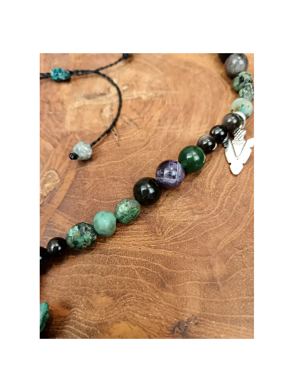 Dank der verstellbaren Zugkordel passt sich diese handgefertigte Kette perfekt an, sei es als diskreter Alltags-Talisman oder als rituelles Werkzeug. Tragen Sie sie und werden Sie zu diesem Hüter des Friedens, ebenso furchteinflößend wie gelassen.