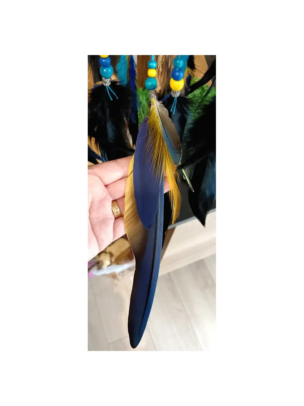 Fabrication artisanale : Création unique "Les Plumes d'Amazone", fait main avec amour et conscience chamanique dans le respect des cycles de la nature. Talisman de purification et d'abondance prêt pour son gardien divin.