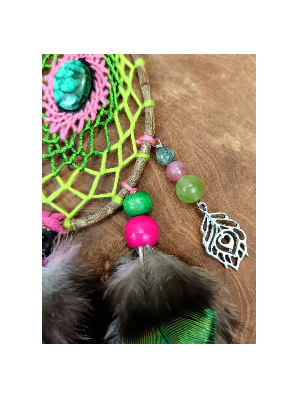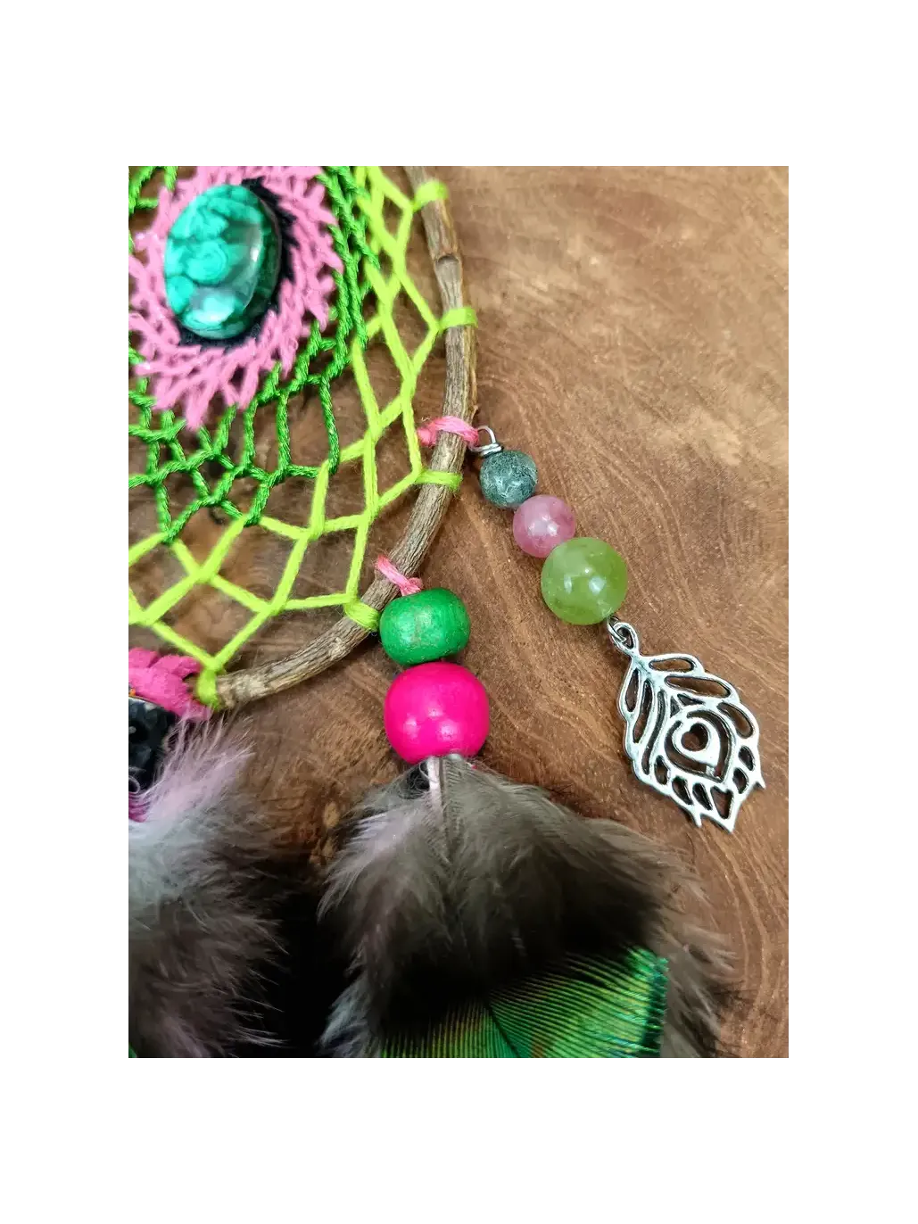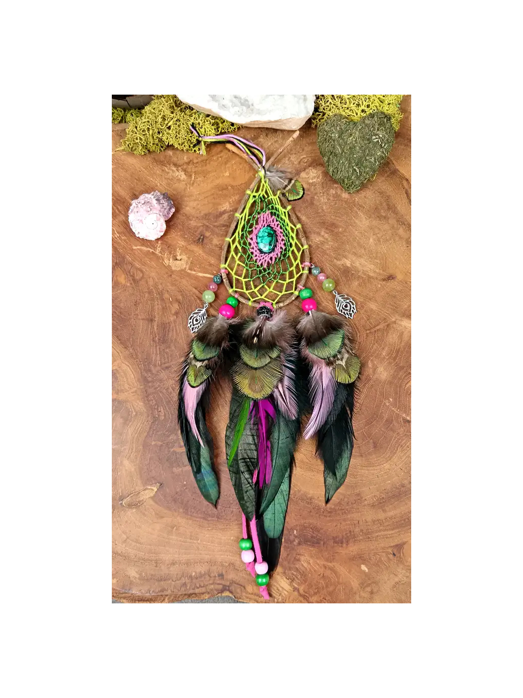 Plongez dans les profondeurs de votre subconscient avec "Le Cœur Sauvage du Rêveur". Cet attrape-rêves chamanique en forme de goutte, délicatement tissé à la main, allie la force de guérison de la malachite à la clairvoyance du totem Paon. Accrochez ce talisman dans votre sanctuaire pour filtrer vos nuits, purifier votre esprit et éveiller votre magie intérieure.