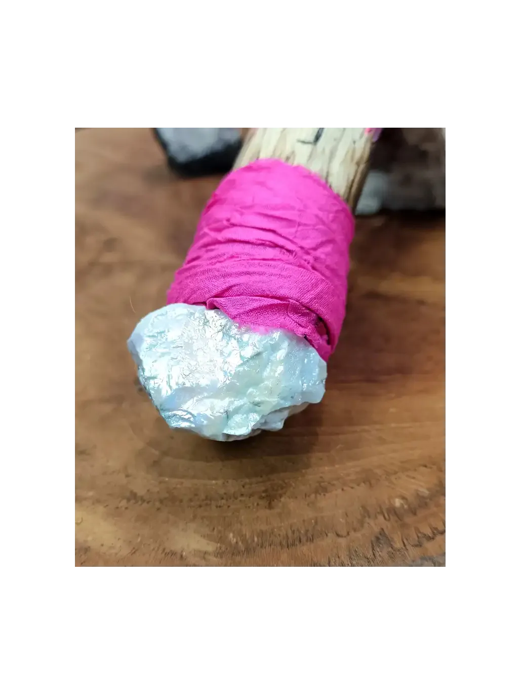 La Synergie Guérisseuse : L'union de la Howlite Aura, calmante et céleste, avec l'énergie vibrante et aimante du Flamant Rose crée un vortex de "feu rose". Cette synergie permet une purification qui ne se contente pas de nettoyer, mais qui vient nourrir les espaces vidés par une énergie d'amour et de compassion.